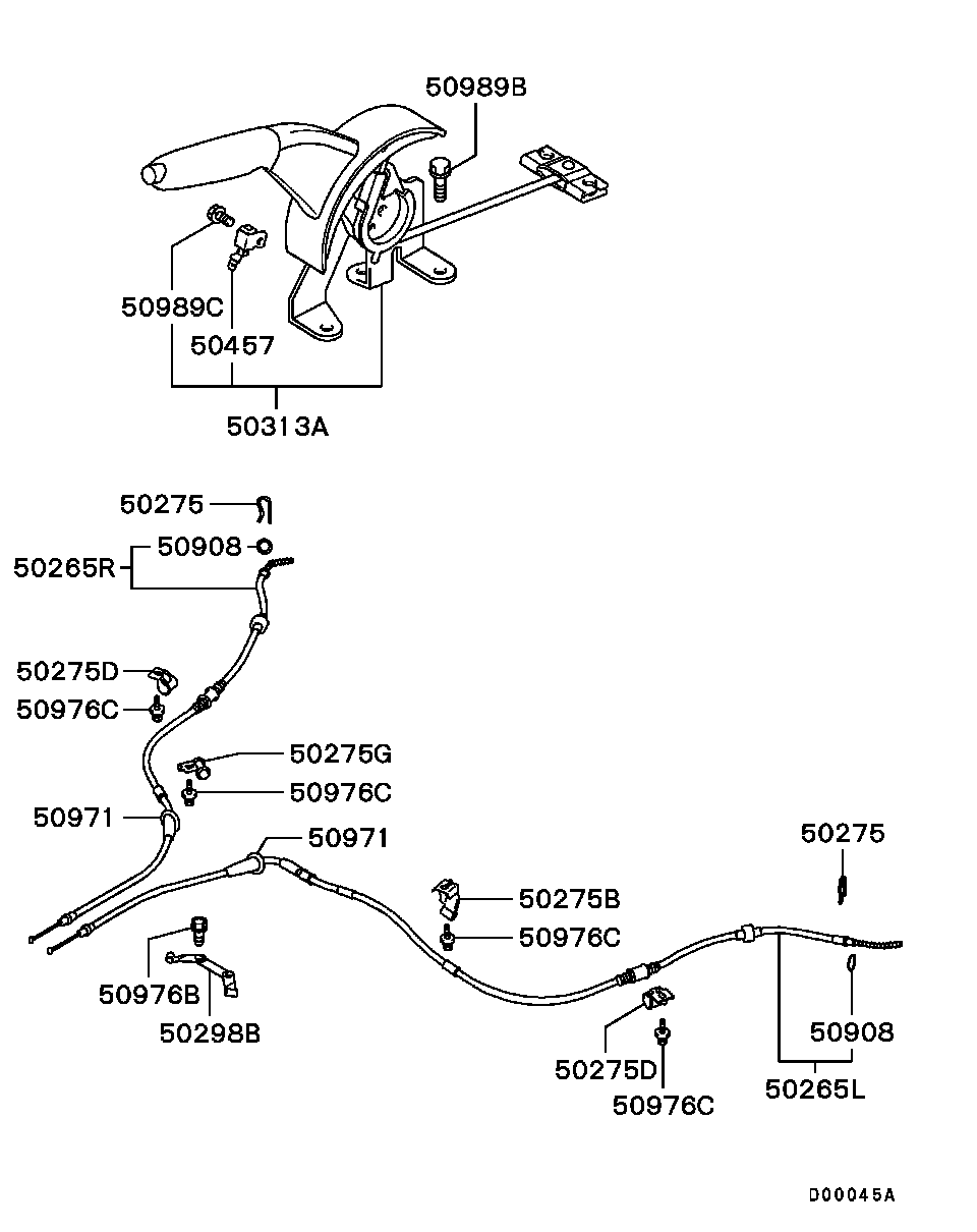 Трос левый стояночного, ручного тормоза