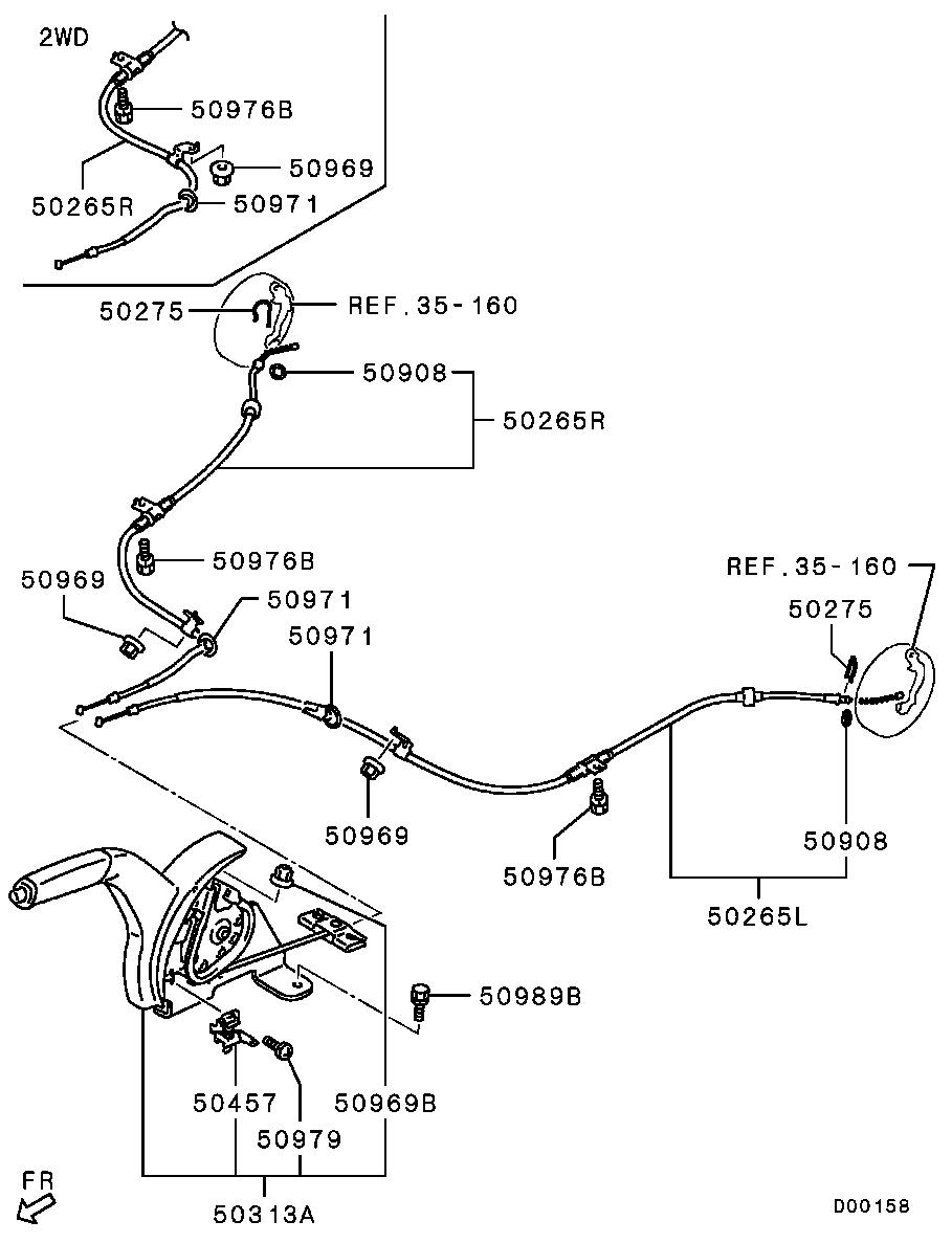 Трос правый стояночного, ручного тормоза