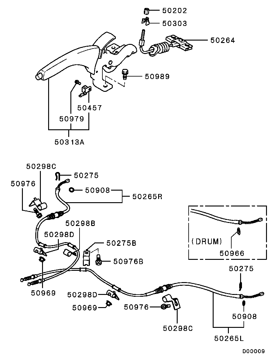 Трос правый стояночного, ручного тормоза
